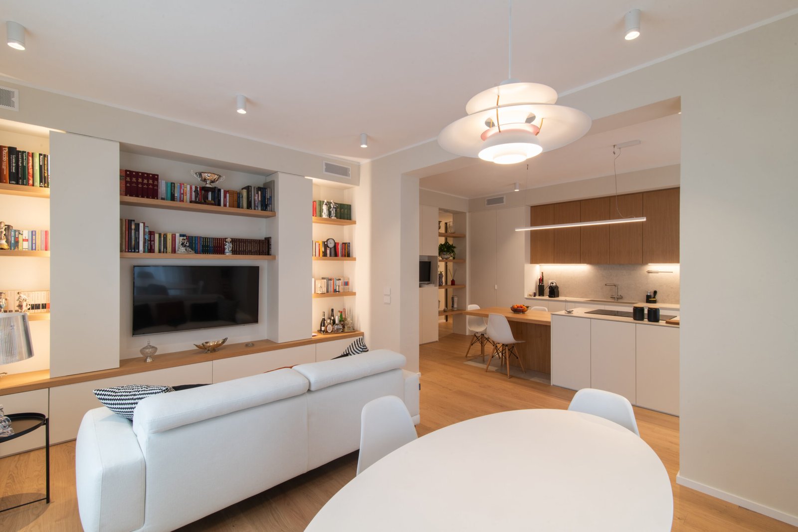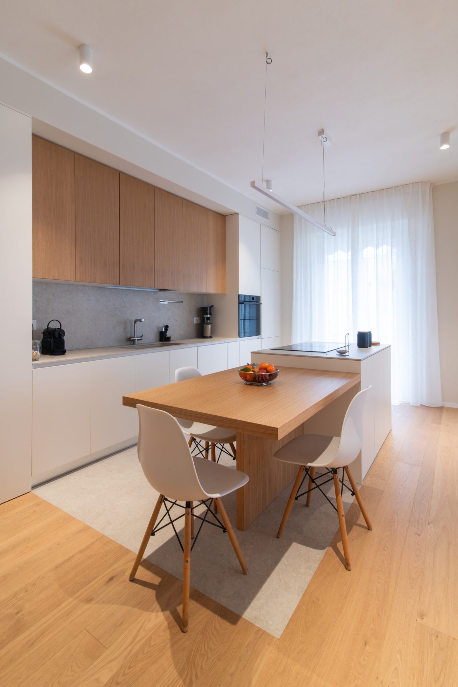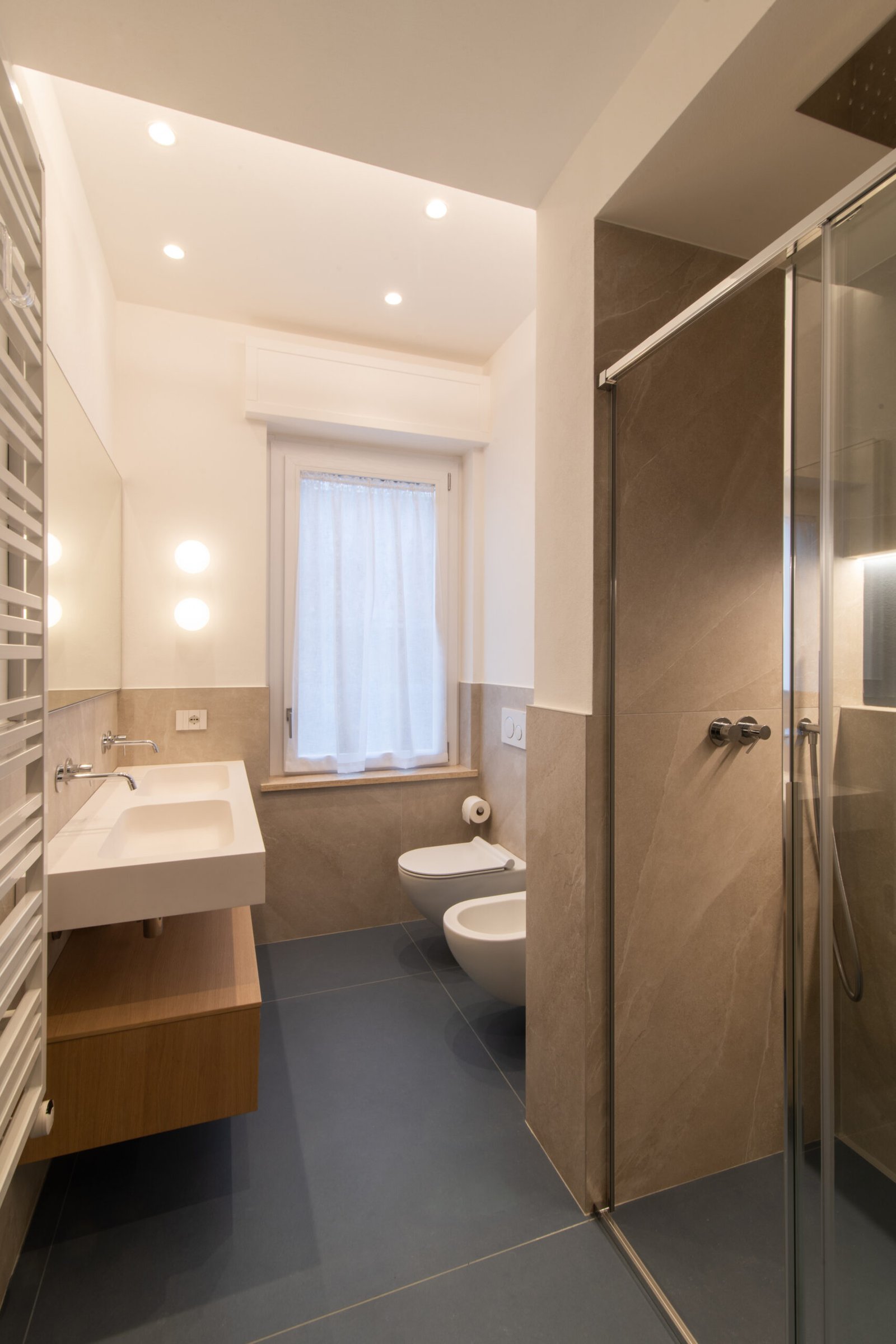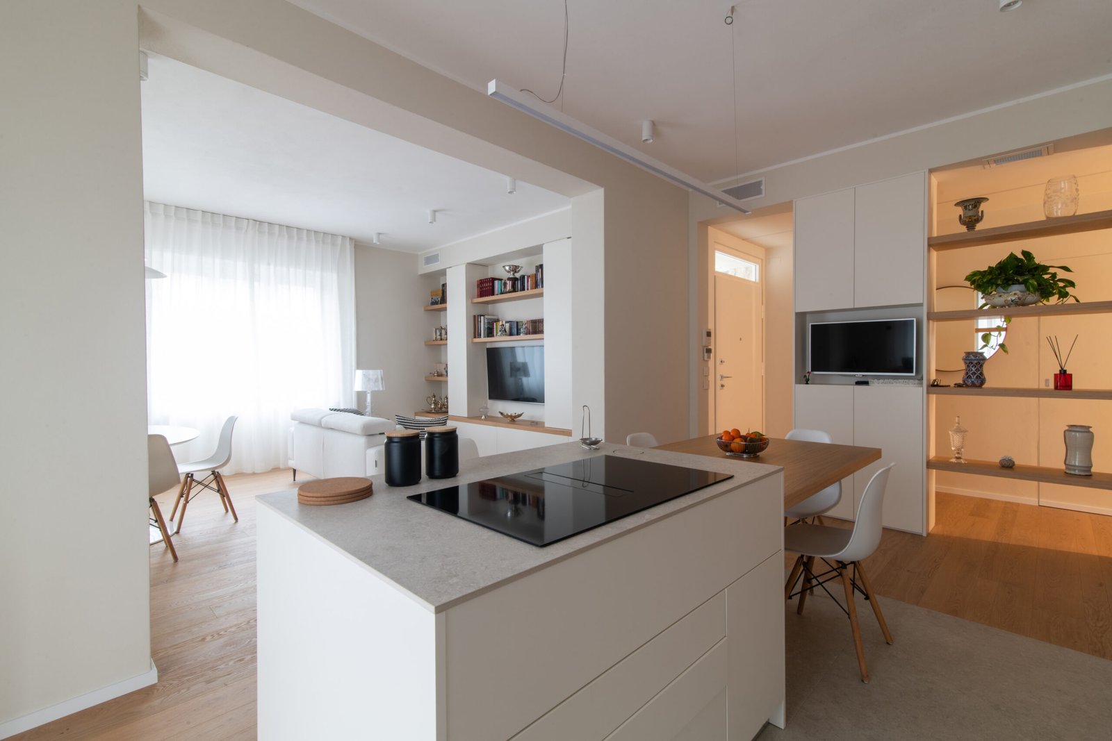 L’intervento riguarda l’intera ristrutturazione interna di un appartamento di circa 110 mq. Un design moderno dalle linee minimali conferisce estrema pulizia e funzionalità agli ambienti. I toni neutri e l’inserimento dosato del colore incontrano i gusti della committenza.
