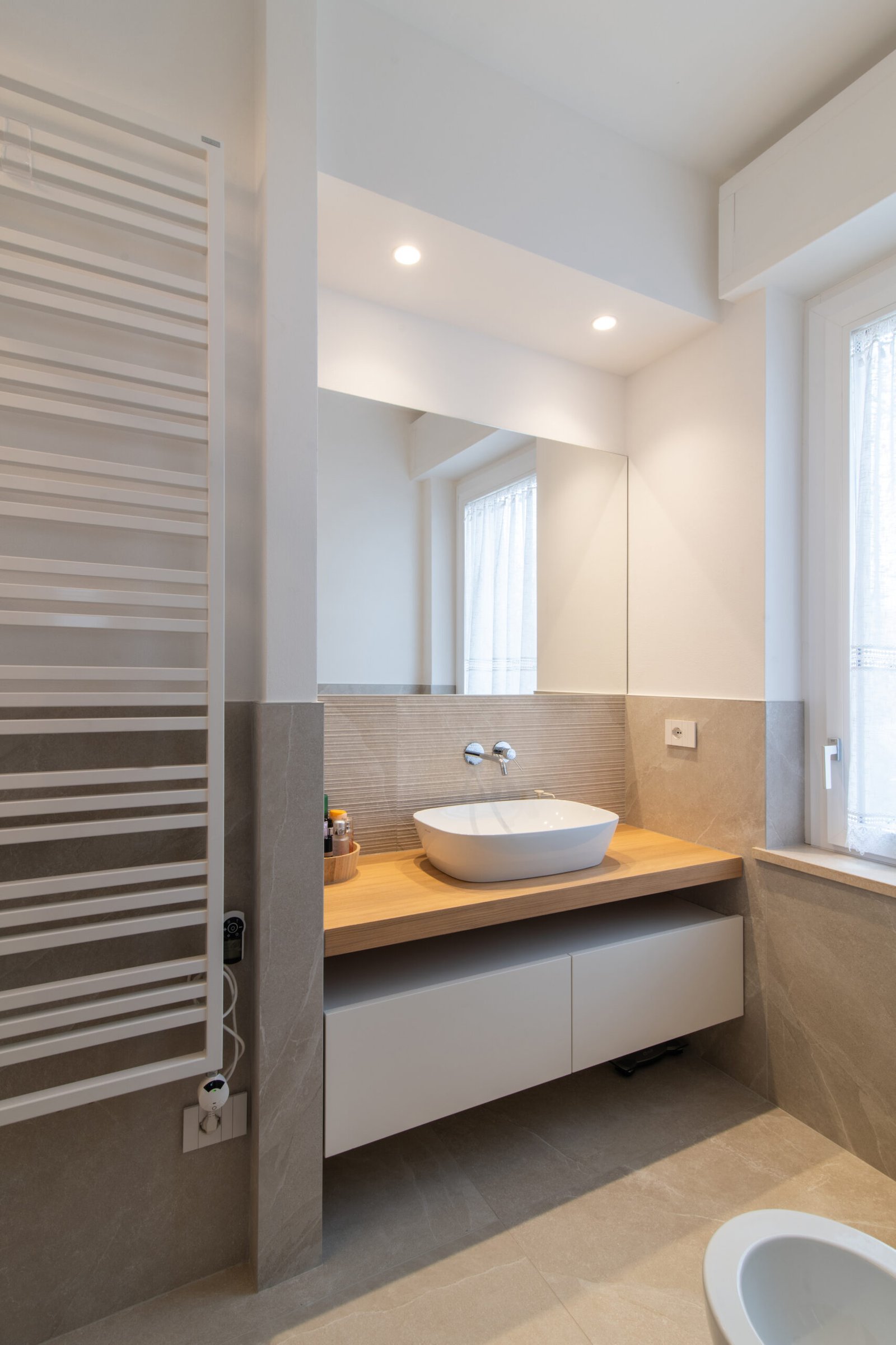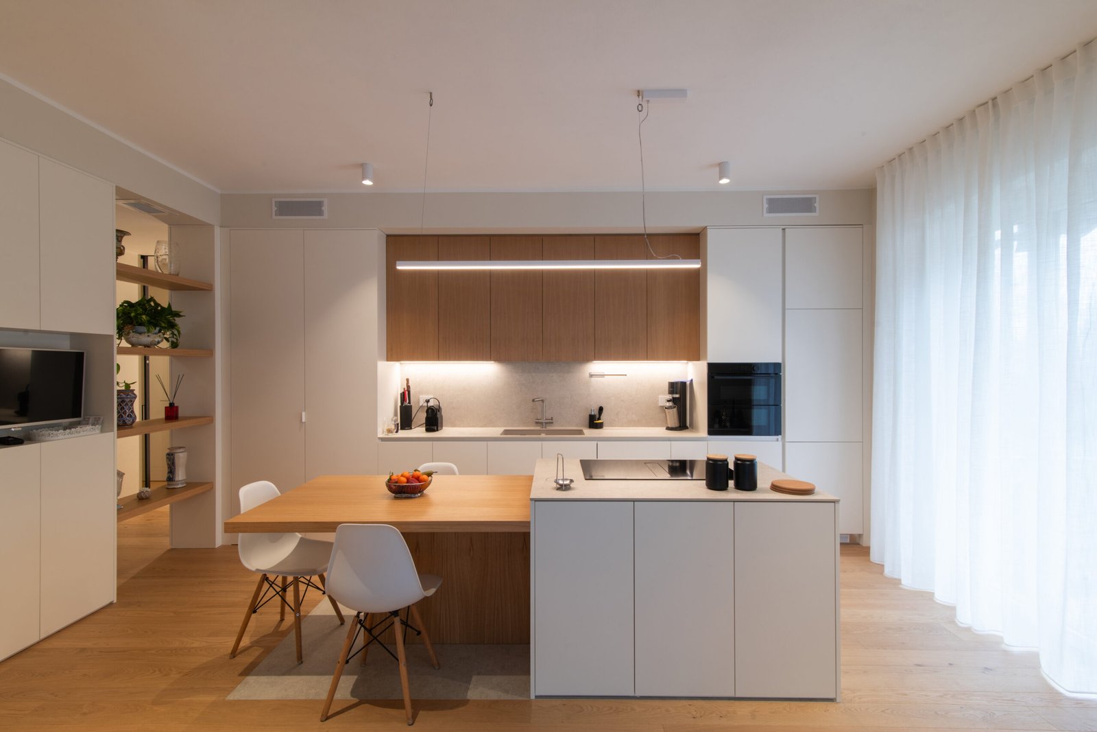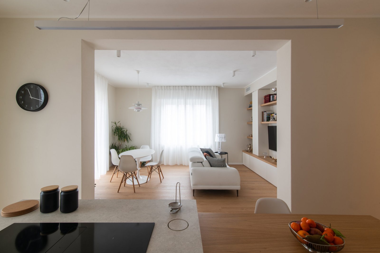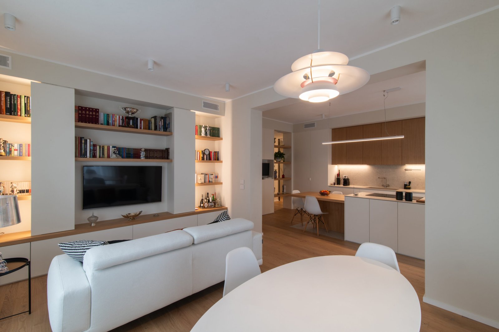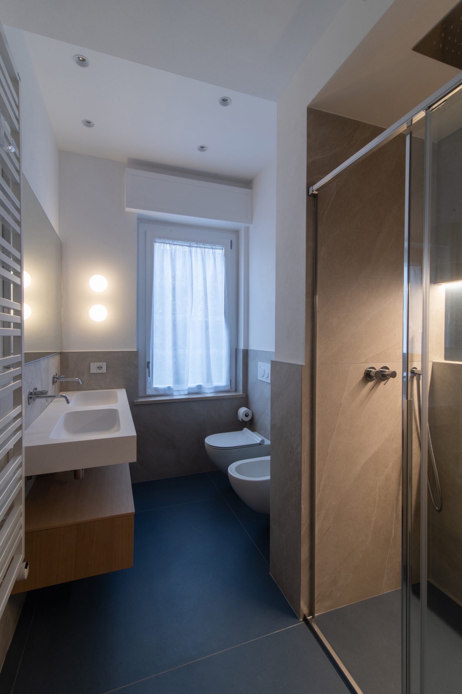 L’intervento riguarda l’intera ristrutturazione interna di un appartamento di circa 110 mq. Un design moderno dalle linee minimali conferisce estrema pulizia e funzionalità agli ambienti. I toni neutri e l’inserimento dosato del colore incontrano i gusti della committenza.