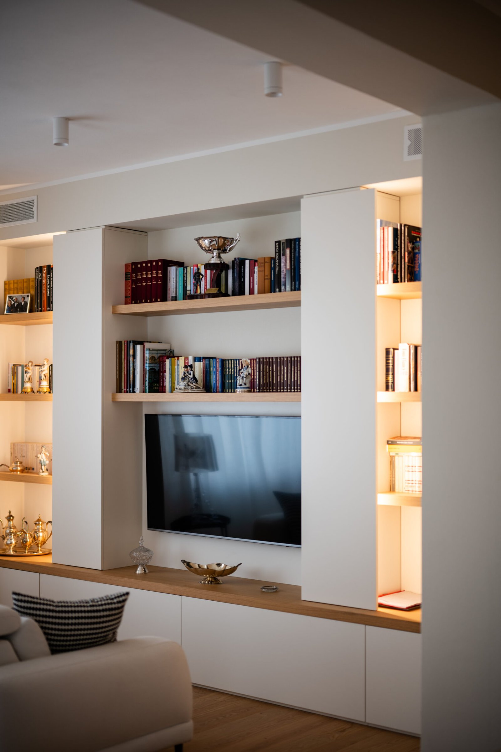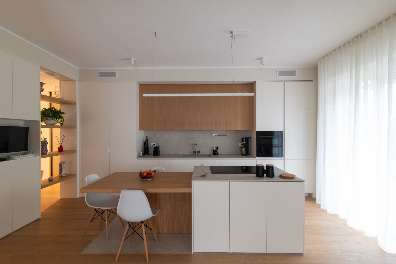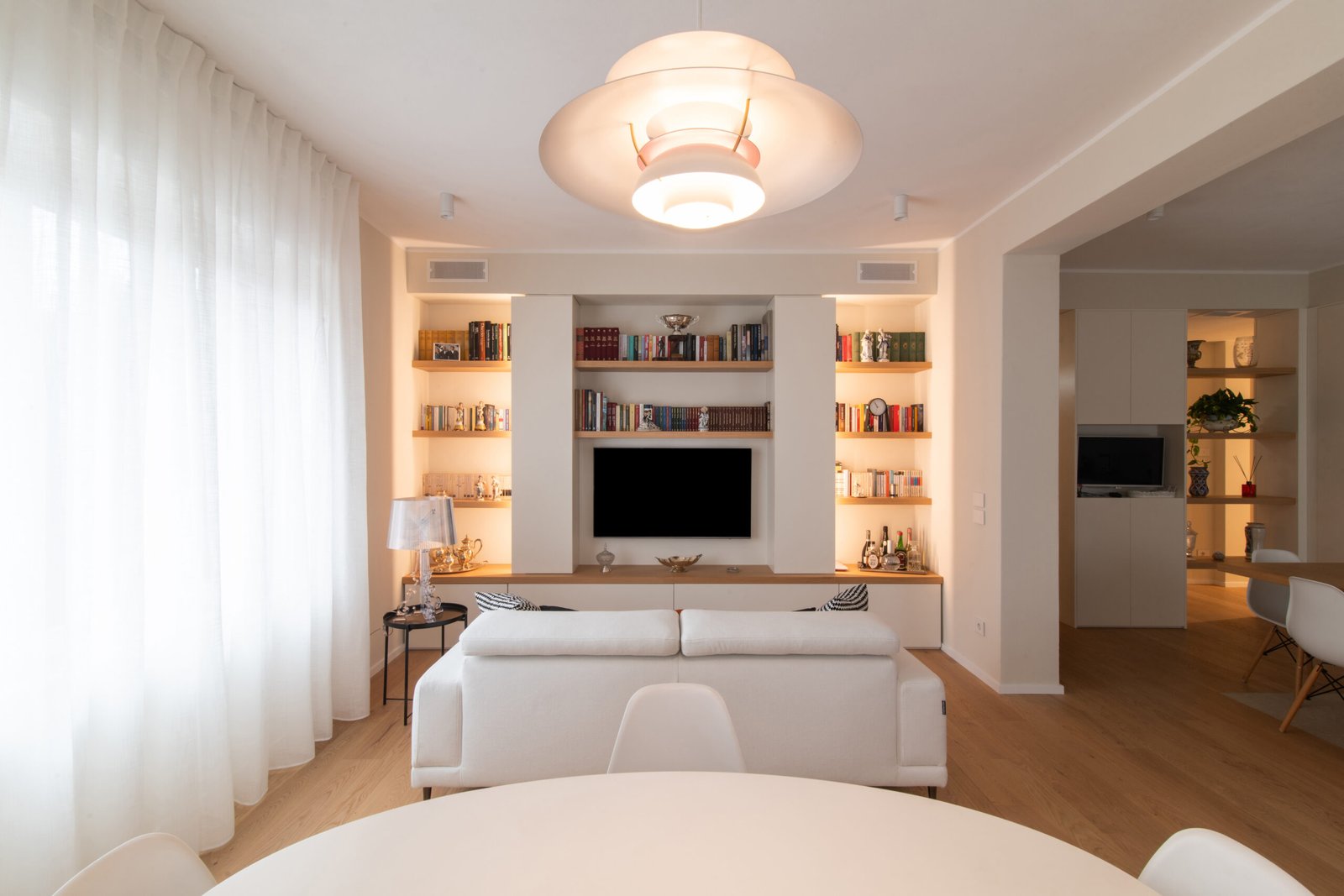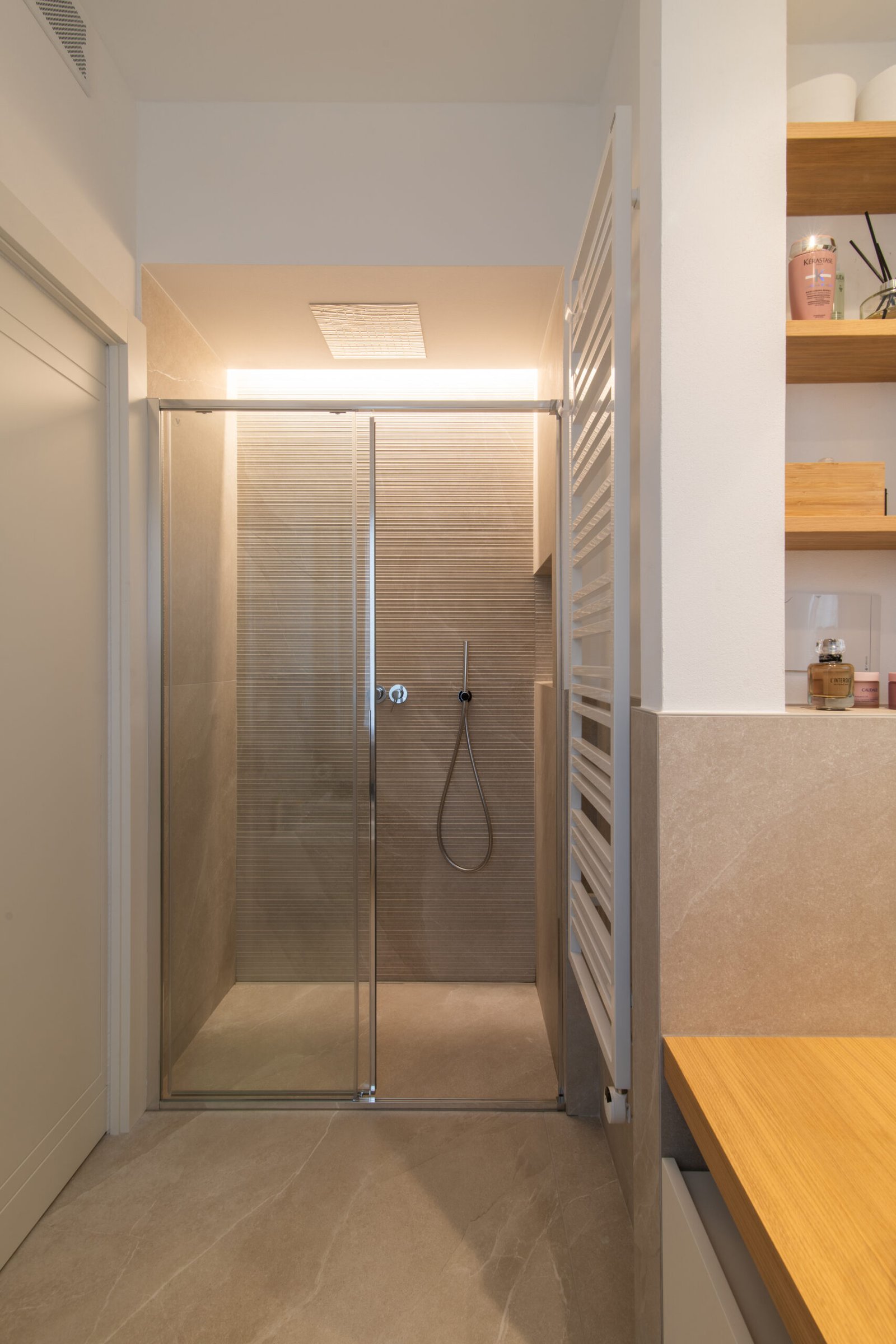 L’intervento riguarda l’intera ristrutturazione interna di un appartamento di circa 110 mq. Un design moderno dalle linee minimali conferisce estrema pulizia e funzionalità agli ambienti. I toni neutri e l’inserimento dosato del colore incontrano i gusti della committenza.