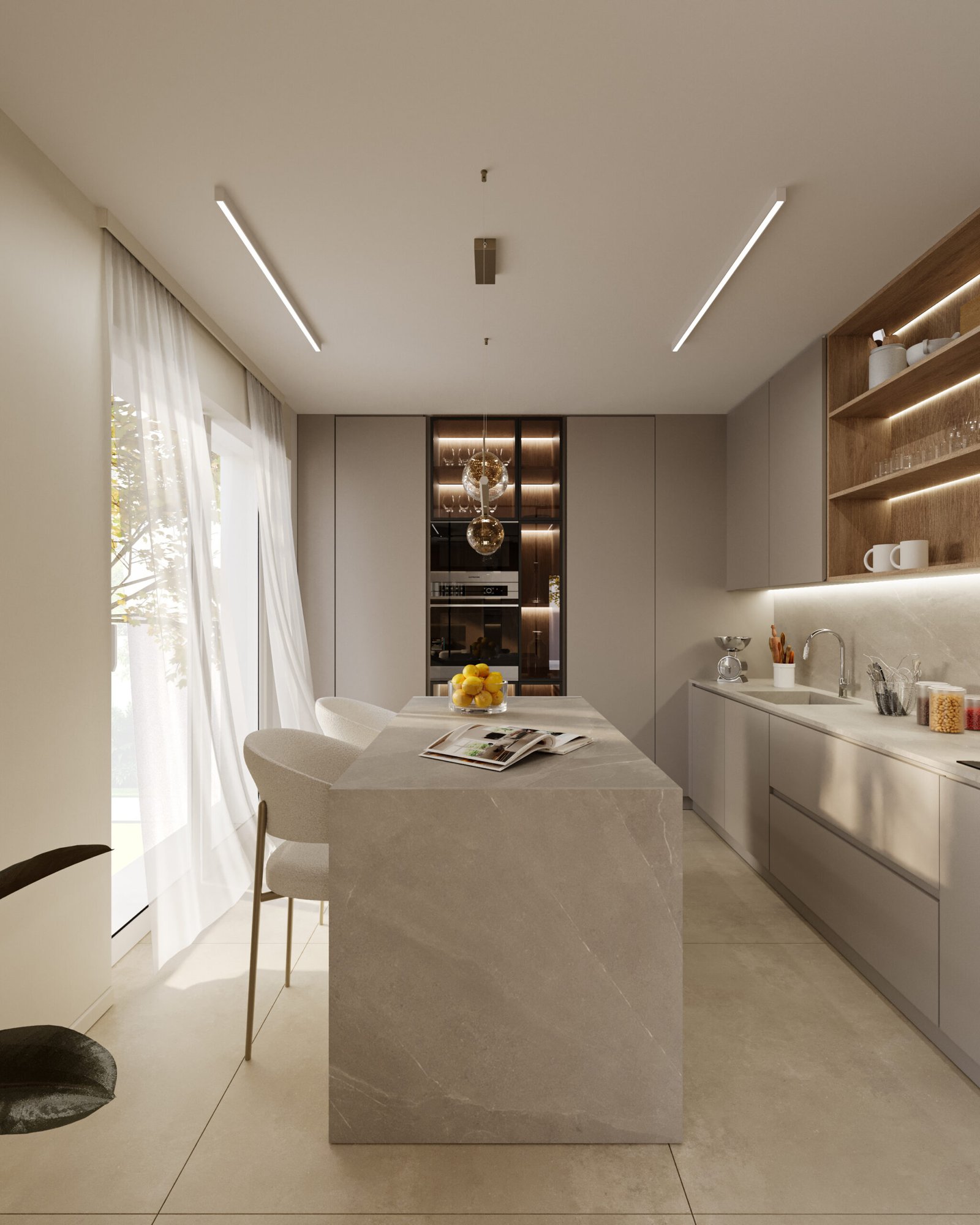 L’intervento riguarda la progettazione interna di una villetta di circa 140 mq di nuova costruzione. Un design moderno ed elegante dai colori caldi ed accoglienti, impreziosito dai dettagli in finitura champagne.