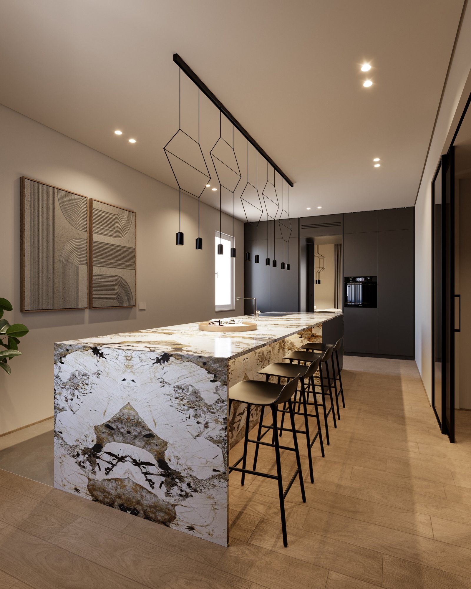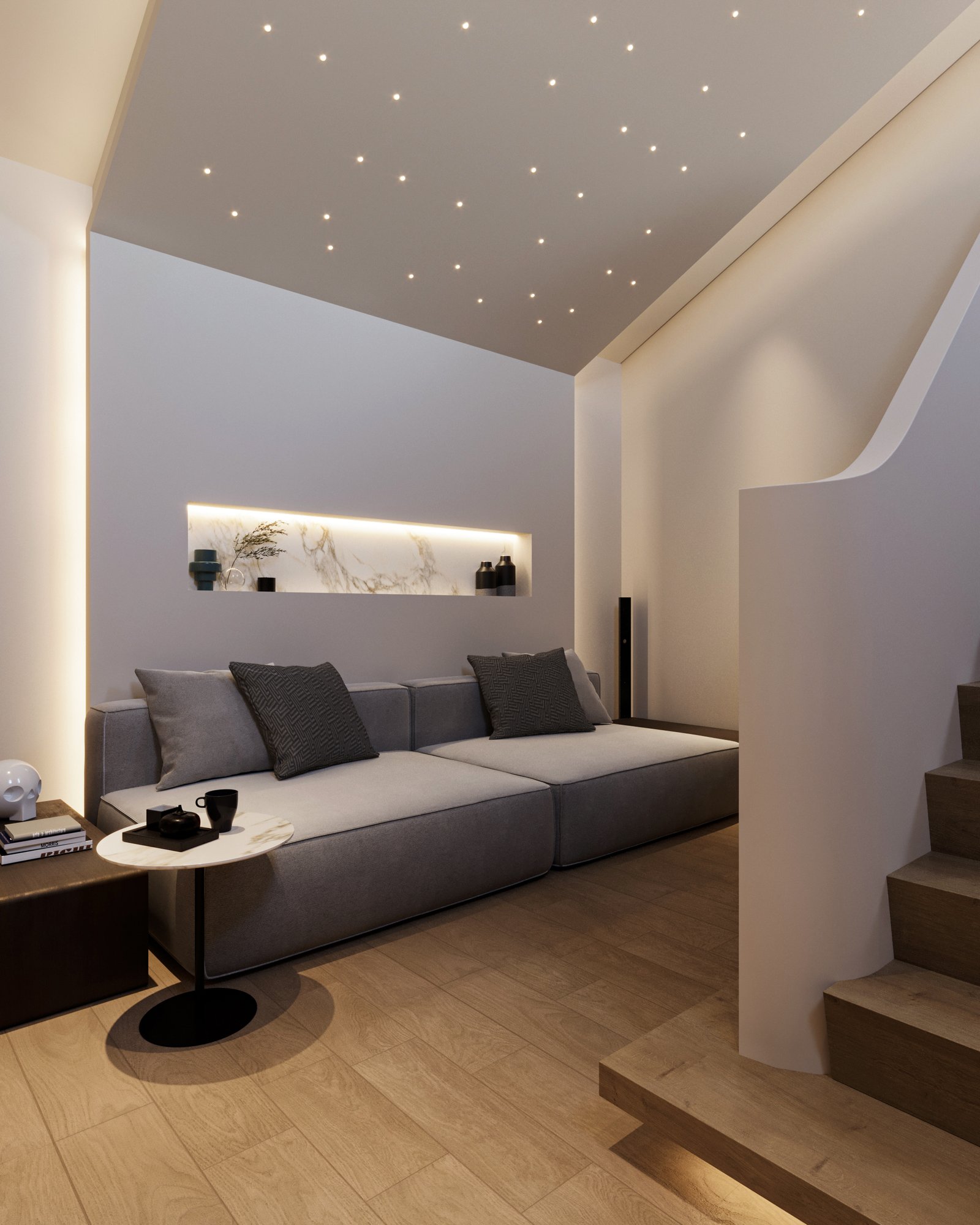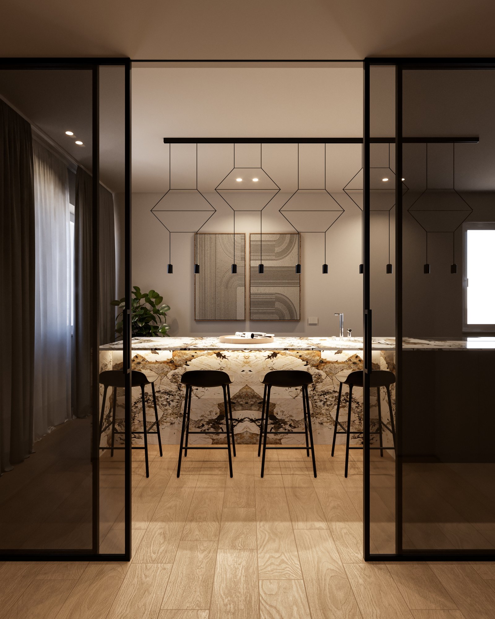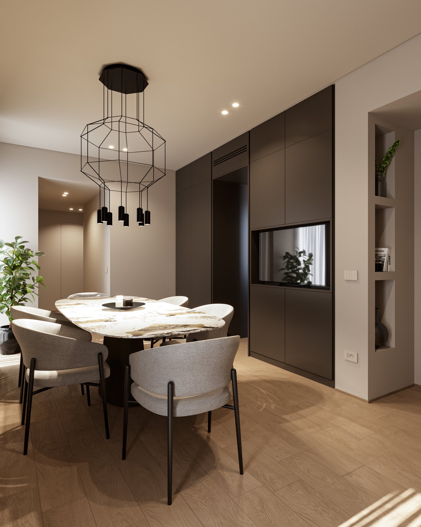 L’intervento riguarda la progettazione interna di una villa indipendente di circa 230 mq. Un design moderno ed elegante dai colori caldi ed accoglienti, impreziositi dalla presenza di finiture marmoree ed un sistema di illuminazione studiato per vivere al meglio la casa nei diversi momenti della giornata.
